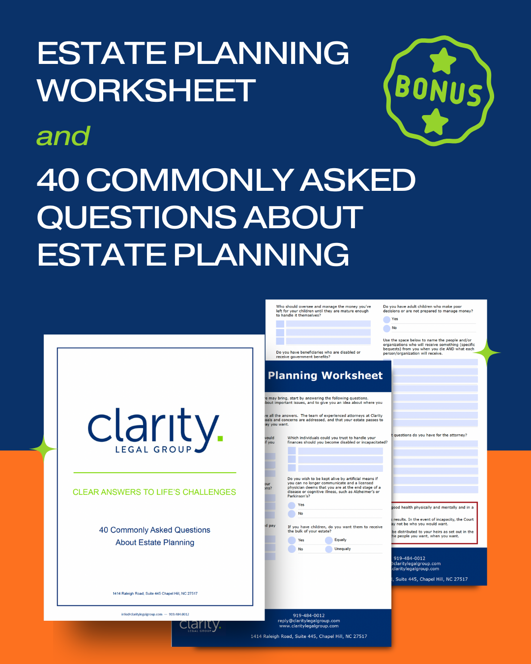 My wife and I recently moved to North Carolina and needed to update our estate plan. We chose Clarity Legal Group and could not have been more pleased with the professionalism, attention to detail and thoroughness throughout this process. All of the staff at Clarity Legal Group are simply outstanding!